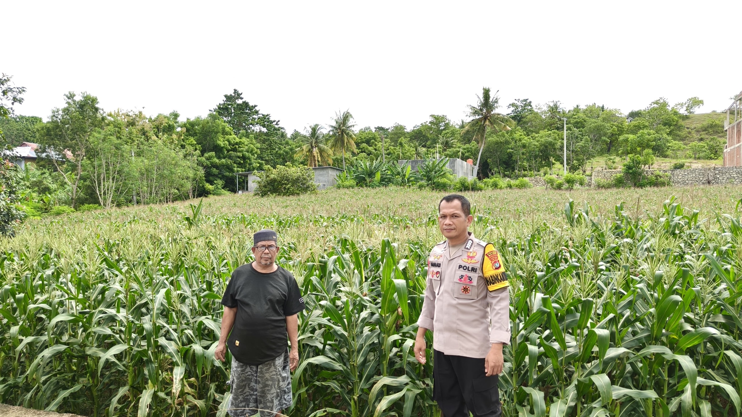 Bripka Ahmadi menyampaikan bahwa pendampingan yang dilakukan tidak hanya sebatas pemantauan, tetapi juga memberikan motivasi kepada para petani agar terus menjaga kualitas perawatan tanaman sehingga hasil panen dapat maksimal.