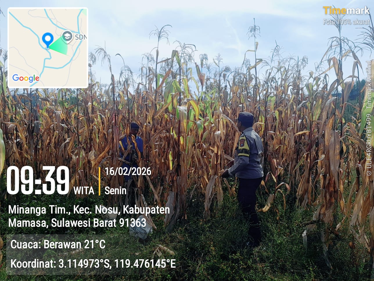 MAMASA – Komitmen menjaga stabilitas keamanan sekaligus mendukung program ketahanan pangan terus ditunjukkan jajaran Polres Mamasa. Melalui personel Bhabinkamtibmas Polsek Pana, Aipda Yoseph K.H., kepolisian turun langsung melakukan monitoring dan pendataan hasil panen jagung warga di Desa Minanga Timur, Senin, 16 Februari 2026.