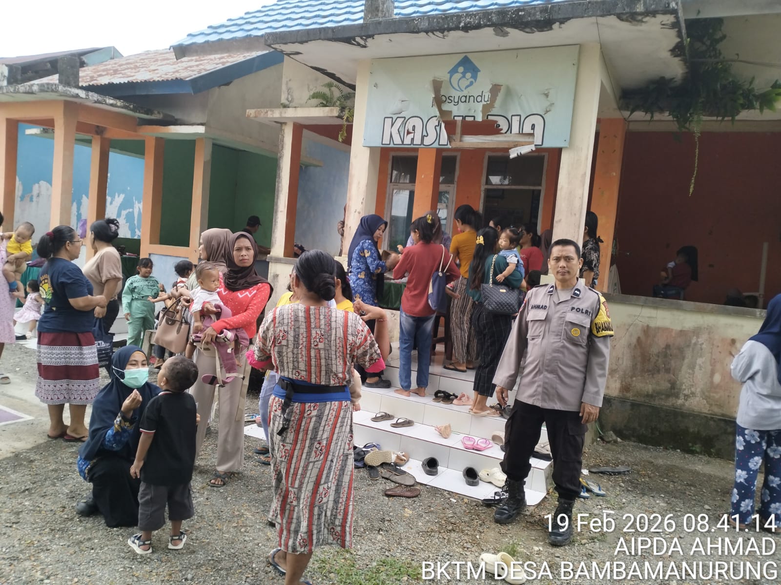 Polres Mamuju Tengah – Wujud kepedulian Polri terhadap kesehatan masyarakat, khususnya ibu dan anak, ditunjukkan oleh Bhabinkamtibmas Desa Bambamanurung, Ahmad, yang melaksanakan pendampingan kegiatan Posyandu di wilayah binaannya, Desa Bambamanurung, Kecamatan Topoyo, Kabupaten Kabupaten Mamuju Tengah, Provinsi Sulawesi Barat, Indonesia. Kamis (19/2/2026).