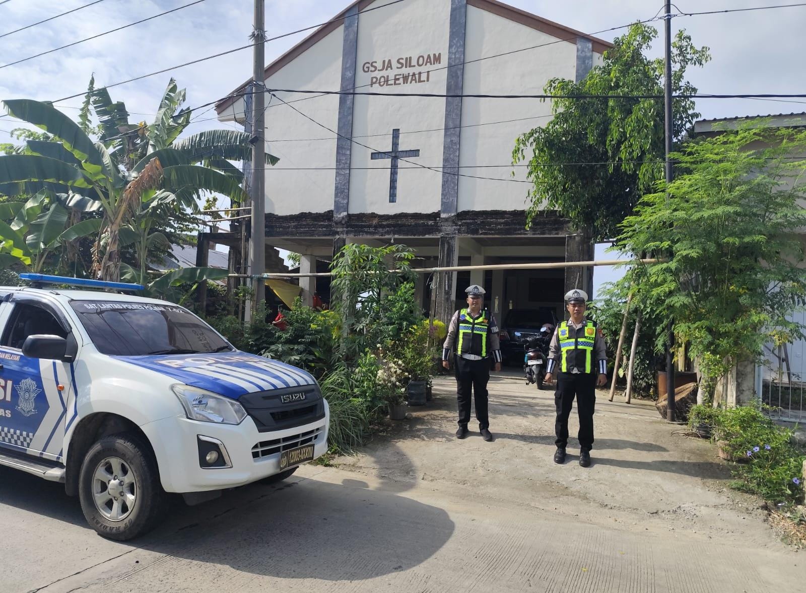 Unit Siaga Sat Lantas Polres Polman Laksanakan Pengamanan dan Patroli Dialogis di Gereja