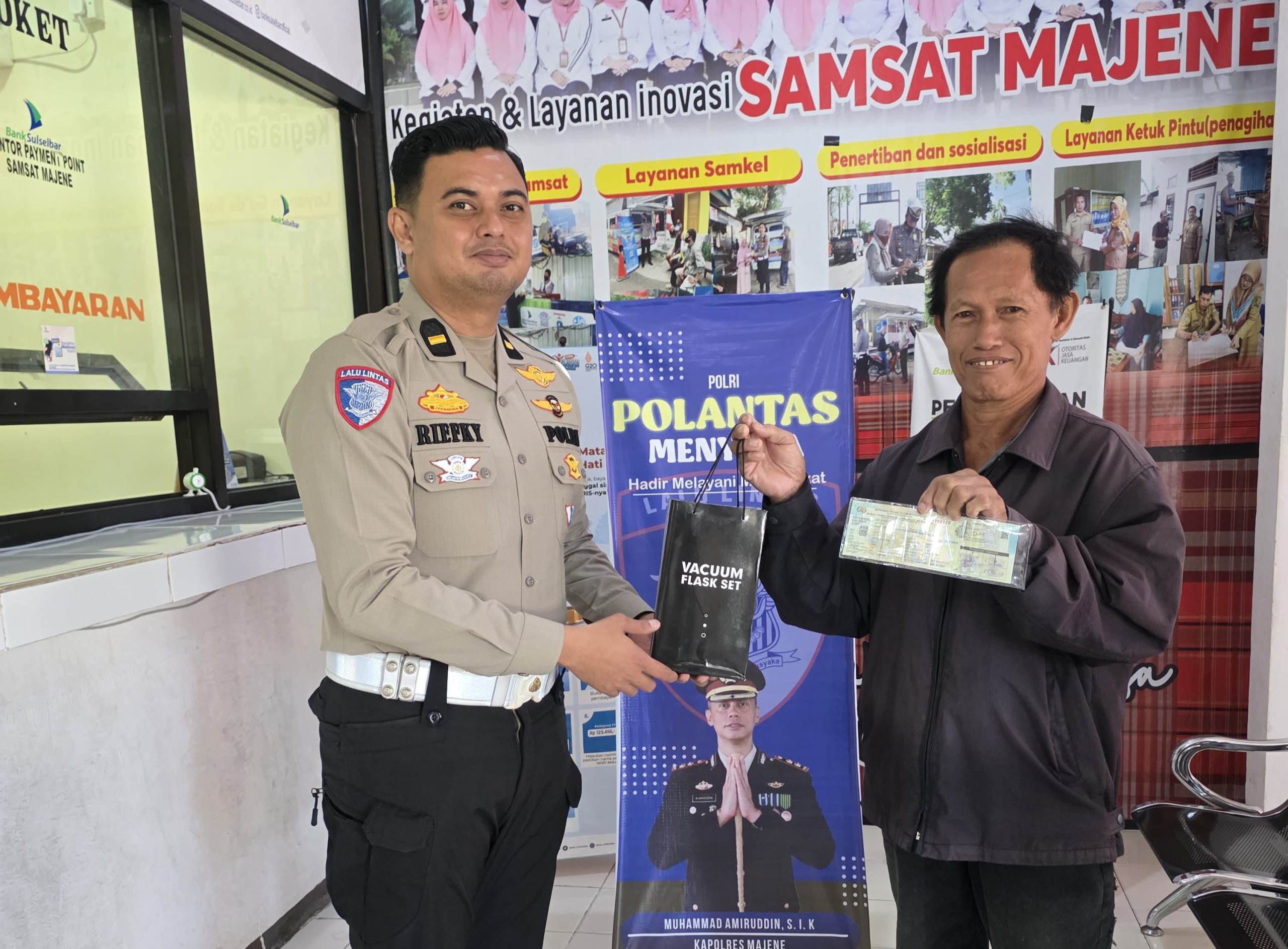 Souvenir yang dibagikan berupa tumbler, sebagai simbol ajakan untuk terus menjaga kebiasaan baik, disiplin, dan tertib dalam administrasi kendaraan. Meski sederhana, pemberian tersebut sarat makna sebagai wujud perhatian dan apresiasi dari kepolisian kepada masyarakat yang patuh aturan.