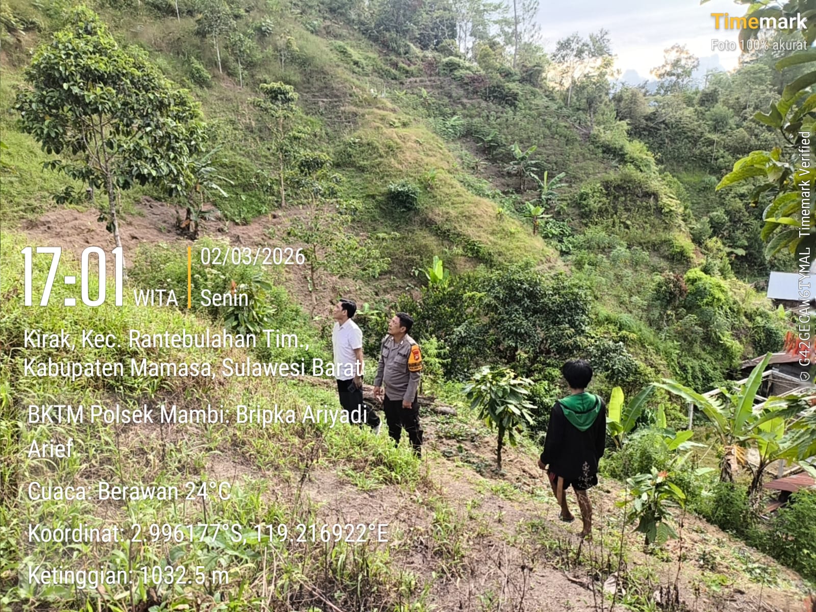 Kegiatan tersebut berlangsung pada Senin, sekitar pukul 17.00 WITA, bertempat di Desa Kirak, Kecamatan Rantebulahan Timur, Kabupaten Mamasa. Dalam pelaksanaannya, Bripka Ariyadi Arief bersama Kepala Desa Kirak, Suderis S.IP, turun langsung ke lokasi untuk memastikan kesiapan lahan yang akan digunakan untuk penanaman jagung.