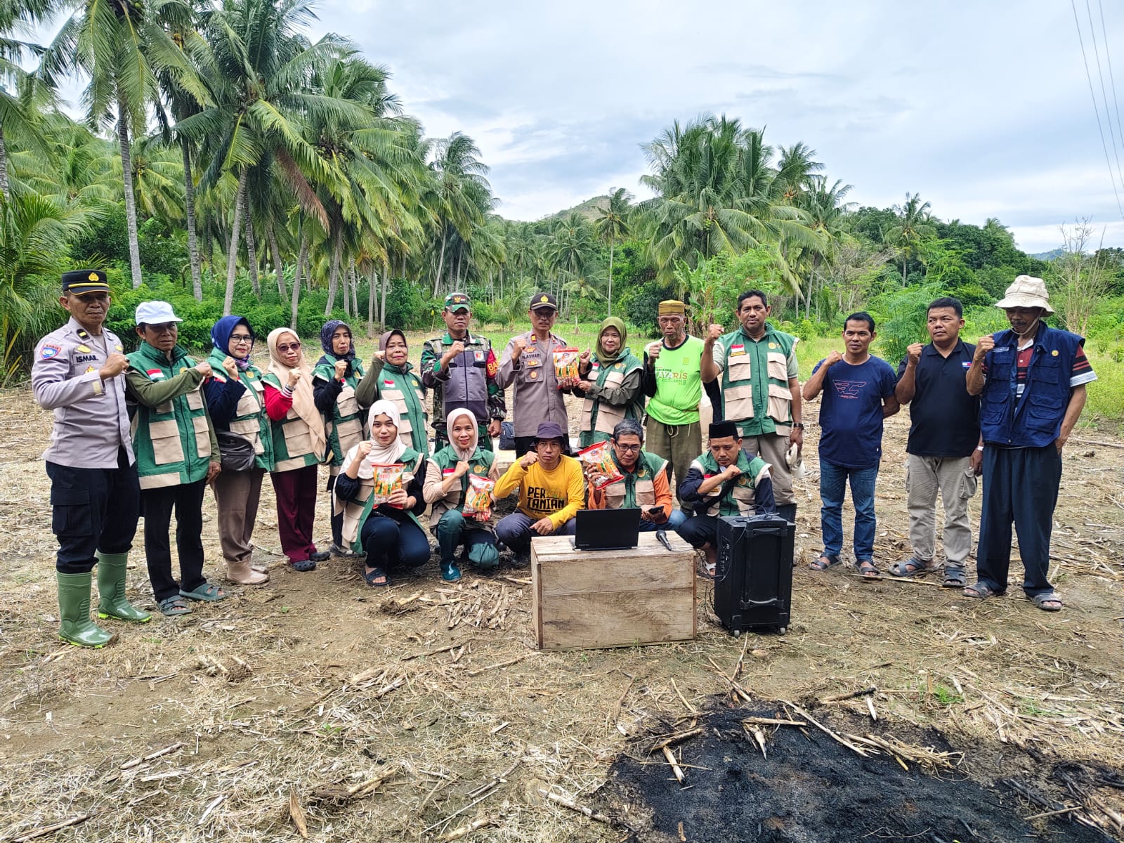 Usai mengikuti kegiatan virtual tersebut, para peserta kemudian melanjutkan dengan penanaman jagung secara simbolis di lahan yang telah disiapkan. Pada kesempatan itu, dilakukan penanaman bibit jagung jenis Bisi 2 sebanyak 4 kilogram, yang merupakan bantuan dari Polsek Sendana kepada kelompok tani setempat.