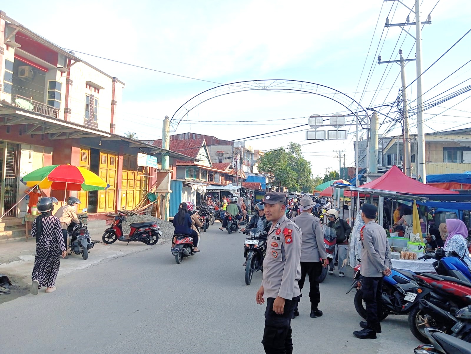 Kehadiran petugas bertujuan mengantisipasi berbagai potensi gangguan keamanan, seperti aksi kriminalitas, premanisme, hingga kepadatan arus kendaraan di sekitar kawasan pasar yang mulai ramai dipadati masyarakat.