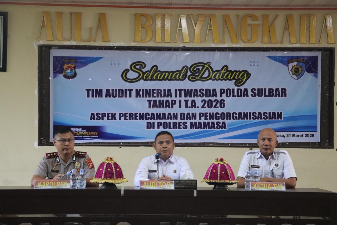 POLRES MAMASA — Komitmen memperkuat tata kelola organisasi yang transparan dan akuntabel kembali ditegaskan melalui pelaksanaan Audit Kinerja Tahap I Tahun Anggaran 2026 oleh Inspektorat Pengawasan Daerah (Itwasda) Polda Sulawesi Barat di Polres Mamasa, Selasa (31/3/2026).