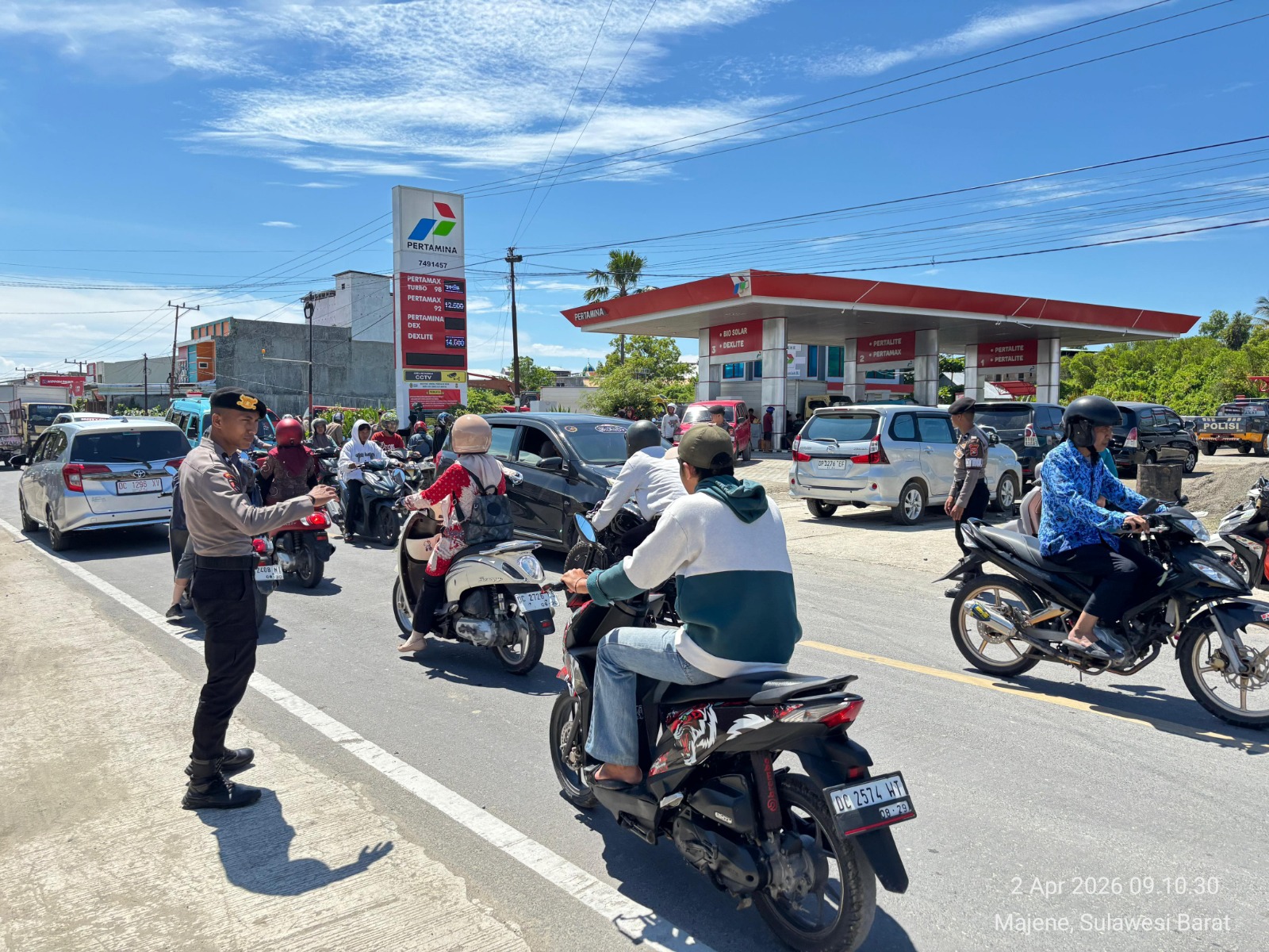Langkah ini merupakan bagian dari upaya preventif untuk menghindari kemacetan panjang yang dapat berdampak pada aktivitas masyarakat di Kabupaten Majene. Selain itu, kehadiran aparat kepolisian juga bertujuan menciptakan rasa aman dan mencegah potensi konflik akibat antrian panjang BBM yang kerap memicu gesekan antar pengendara.
