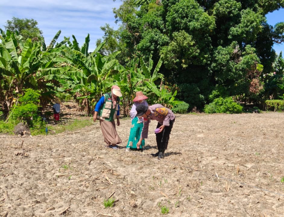 Perkuat Ketahanan Pangan, Bhabinkamtibmas Polsek Banggae Kolaborasi Petani Tanam Jagung di Kelurahan Tande