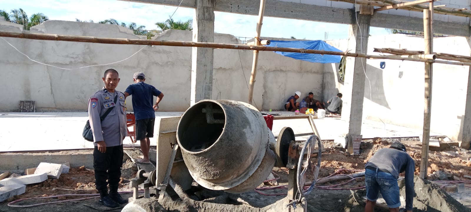 Dalam kegiatan tersebut, Aipda Nikram hadir langsung di tengah masyarakat, tidak hanya menjalankan tugas sebagai aparat keamanan, tetapi juga berperan sebagai mitra masyarakat dalam mendukung kemajuan desa. Ia terlihat turut bergotong royong bersama warga, memberikan dukungan moril sekaligus membantu proses pembangunan yang tengah berjalan.