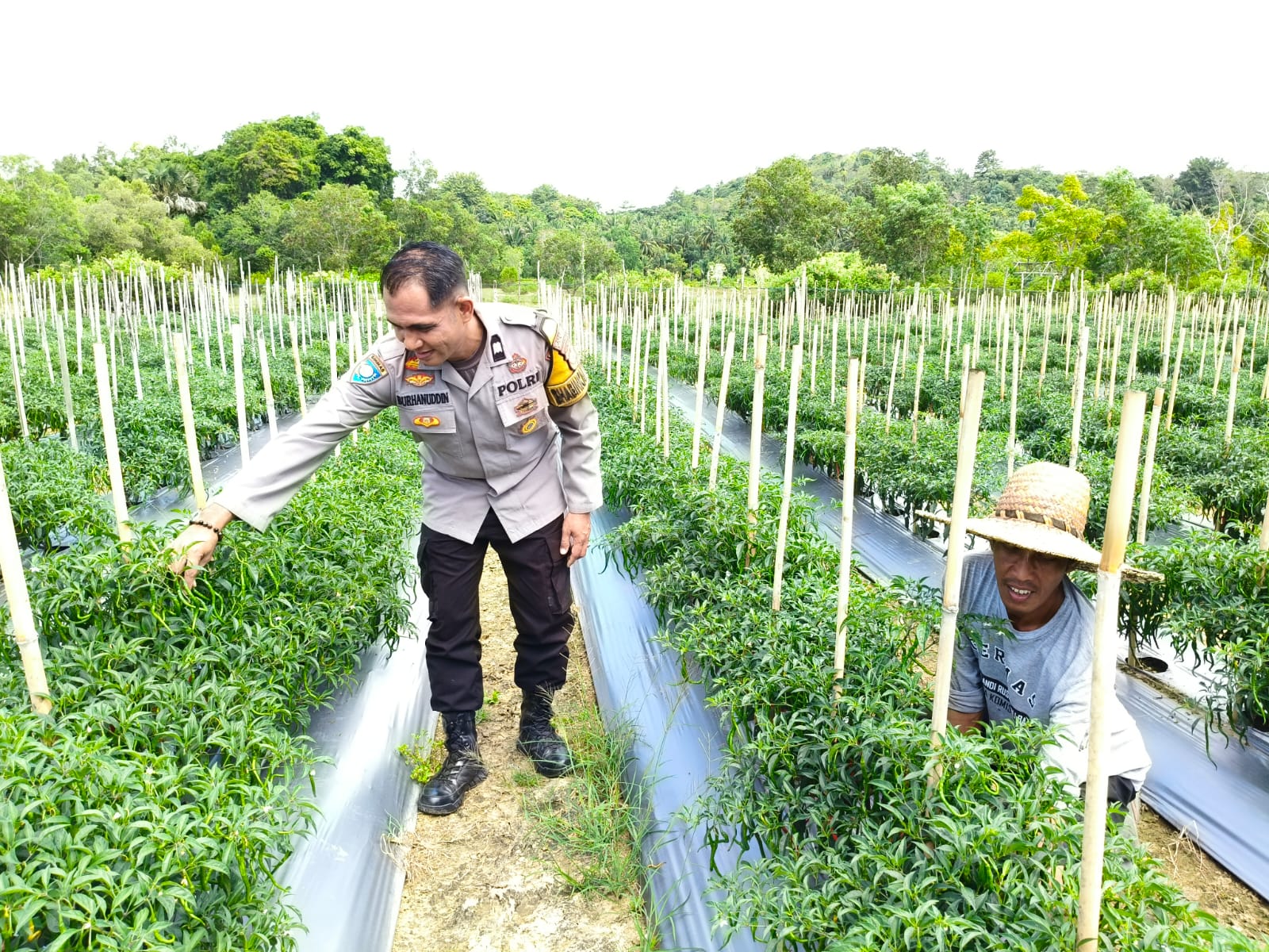 Dalam kunjungannya, AIPTU Burhanuddin berdialog langsung dengan para petani untuk mengetahui kondisi terkini tanaman cabai yang tengah dibudidayakan. Ia juga memberikan motivasi agar petani tetap konsisten dalam melakukan perawatan, mulai dari pengairan, pemupukan hingga pengendalian hama, guna memastikan hasil panen yang optimal.