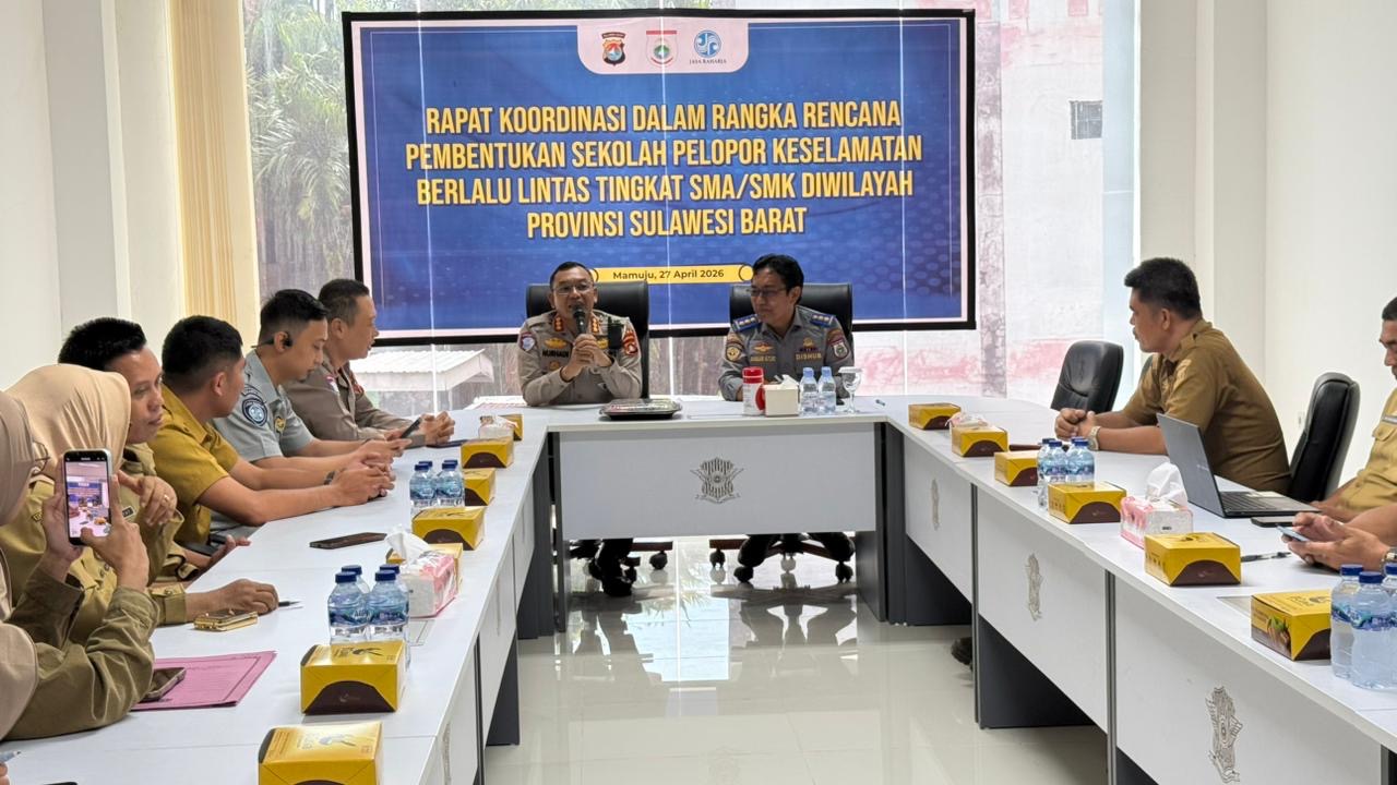 Rakor tersebut dipimpin langsung Direktur Lalu Lintas Polda Sulbar, Kombes Pol Nurhadi Ismanto, serta dihadiri sejumlah pemangku kepentingan, di antaranya Kepala Dinas Pendidikan dan Kebudayaan, Kepala Dinas Perkimtanhub, Kepala Biro Hukum dan Biro Pemkesra Setda Provinsi Sulbar, perwakilan Jasa Raharja, hingga pihak sekolah seperti SMAN 1 Mamuju dan SMKN 1 Rangas.